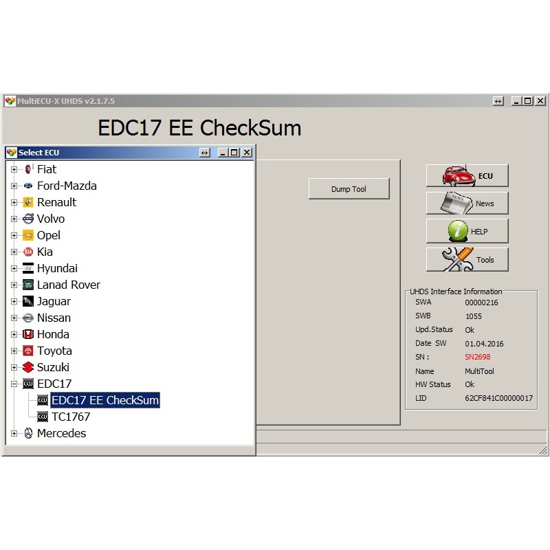 - Siemens SID 204 : Reda/Write EE, Read/Write External Flash, Read/Write MPCxx, Service MODE, Exit Service MODE (option available from 12.05.2015)
