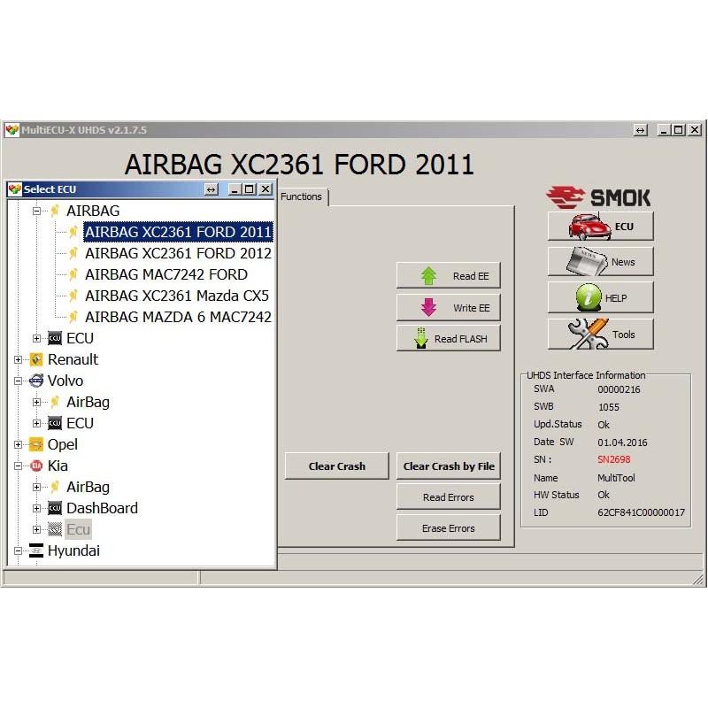 • Crash Data Erasing a file. Read eeprom is done by the OBD system: