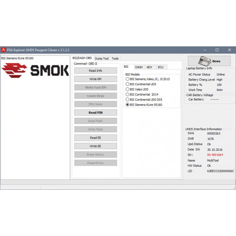 Peugeot 1007, 206, Partner, Citroen C2,C3, Berlingo BSI Siemens Kline NEC 76Fxxx +95160 (Attention!!! UHDS with SN<3550 you must connect pin 7 with pin 11 in OBD)